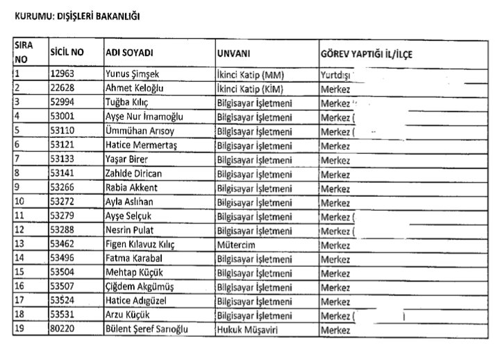 19 people purged from Foreign Ministry of #Turkey that included 2 diplomats, IT guys, legal advisor and translator. Almost 500 fired already