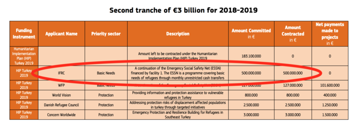 The IFRC was selected to take over the scheme – known as the Emergency Social Safety Net, or ESSN – after a three-way tendering process that began in January and included the World Bank as well as the WFP.