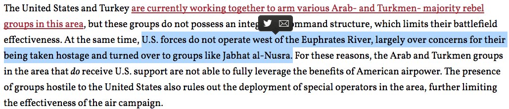 Why aren’t they any U.S. special forces among moderate rebels, west of the Euphrates?