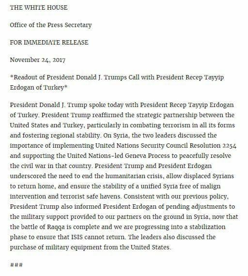 MESOP NEWS DOCUMENTS : STATEMENT – DONALD J. TRUMP & RECEP TAYYP ERDOGAN – Read true document 26 Nov 2017 www.mesop.de