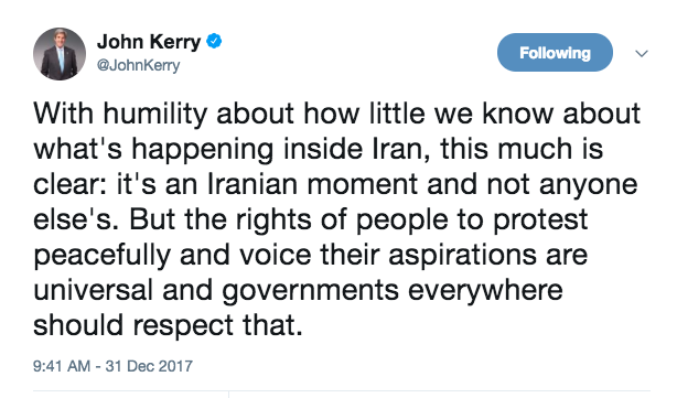 31 Dec 2017 – In shocking comments on Twitter on December 31 former US Secretary of State John Kerry claimed he knew “little” about what was happening in Iran after three days of protests across the country.