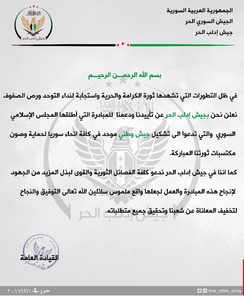 x7 more opposition groups have signed onto #Syria Interim Govt & Islamic Council’s proposed “national army” initiative in 36hrs, including: www.mesop.de