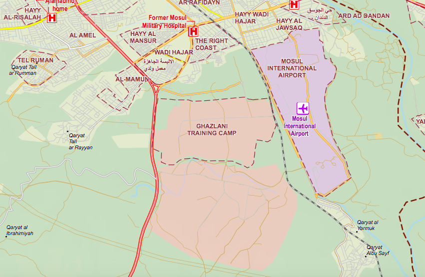 In the last two days the police and armor from the 9thDivision moved out of Abu Saif in the south, took the town of Yarmouk. The Golden Div joined in and together they have freed the Mosul Airport, Ghazalni Camp, and entered Tel Ruman, Mamun, Wadi Hajar, Hawl al-Josaq and Dandan. (Medecins Sans Frontieres)