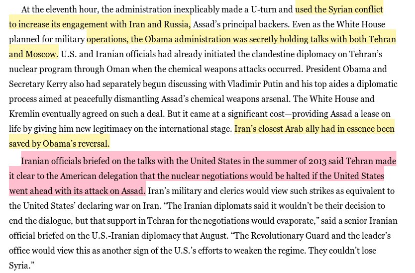 – U.S. allies told Obama he must enforce his “red line” on chemical WMD – #Iran told Obama if struck Asad, they would walk away from the nuclear talks Obama, already in secret talks with #Russia and #Iran, stood down from his threat, re-confirmed Asad in power [via @jaysolomon]